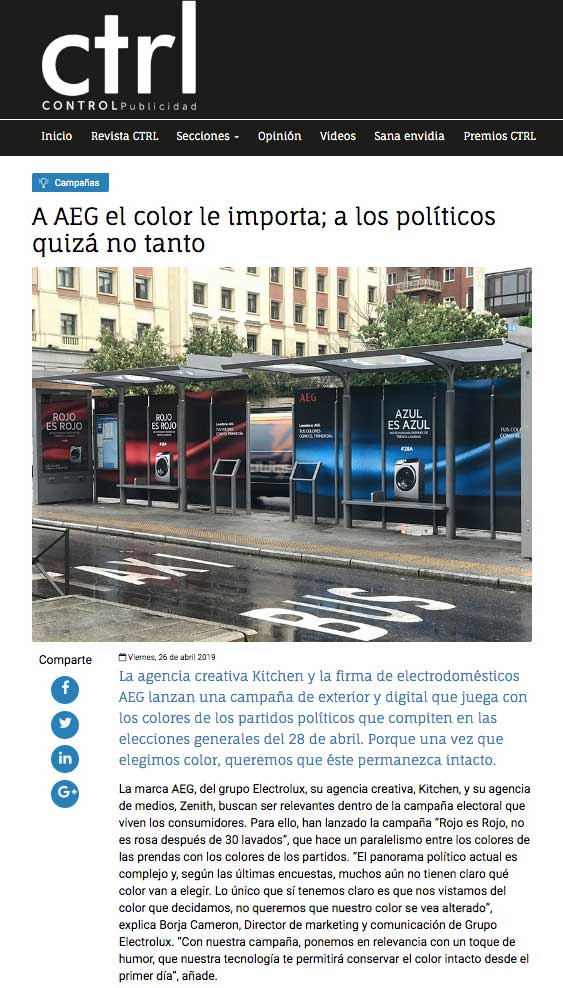 Este mensaje creado para la gama de lavado de AEG inundó las calles de Madrid y Barcelona en 2018.